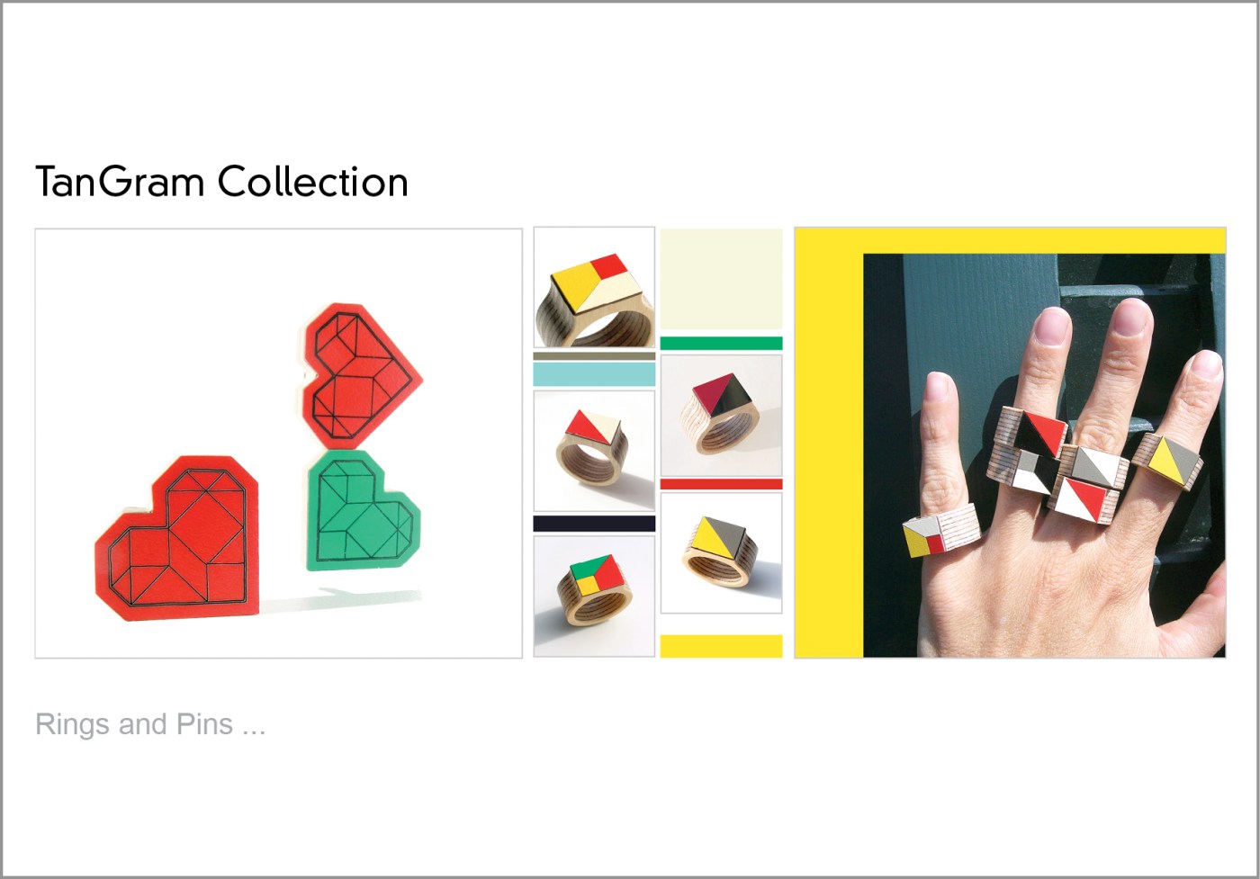 A colorful and funny series of rings and pins with geometries and color.